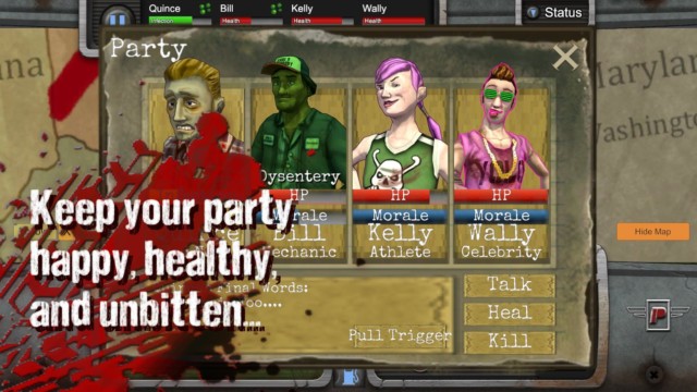 - Keep your team of travelers healthy and happy. Each has their own job that will help the party along their journey: firearm expert, melee expert, paramedic, and mechanic. Lose one and you’ll be limping down the road!